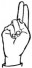 На ћирилици написано МОМИРКА ЛАКЧАНИН састоји се из 15 слова [?]. Исписано ћириличном једноручном азбуком за глувонеме: